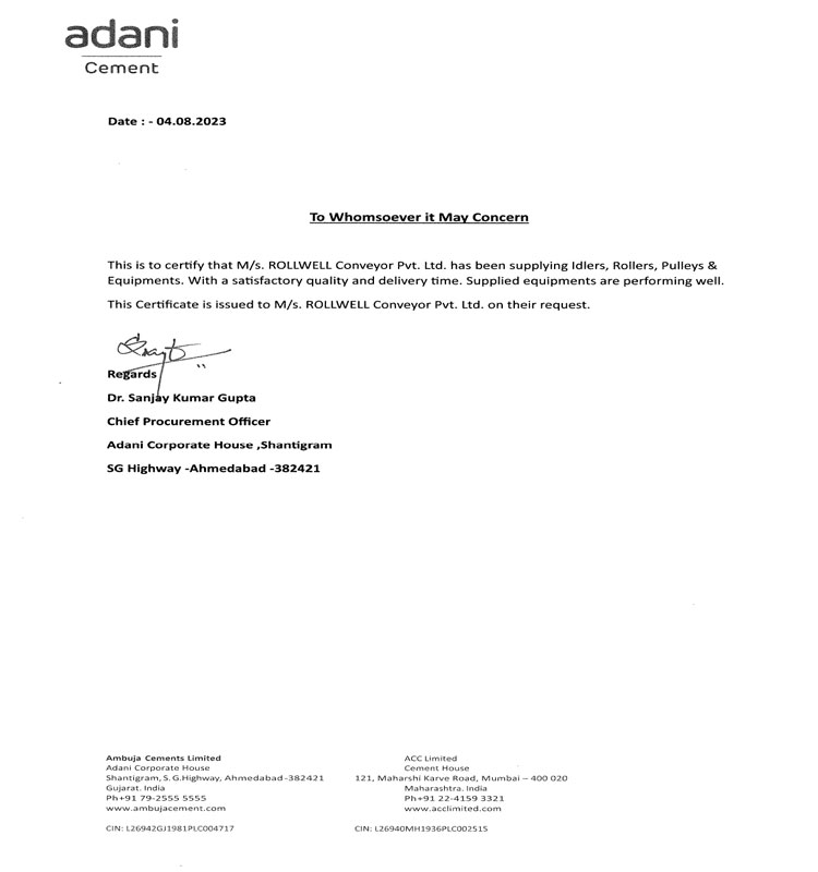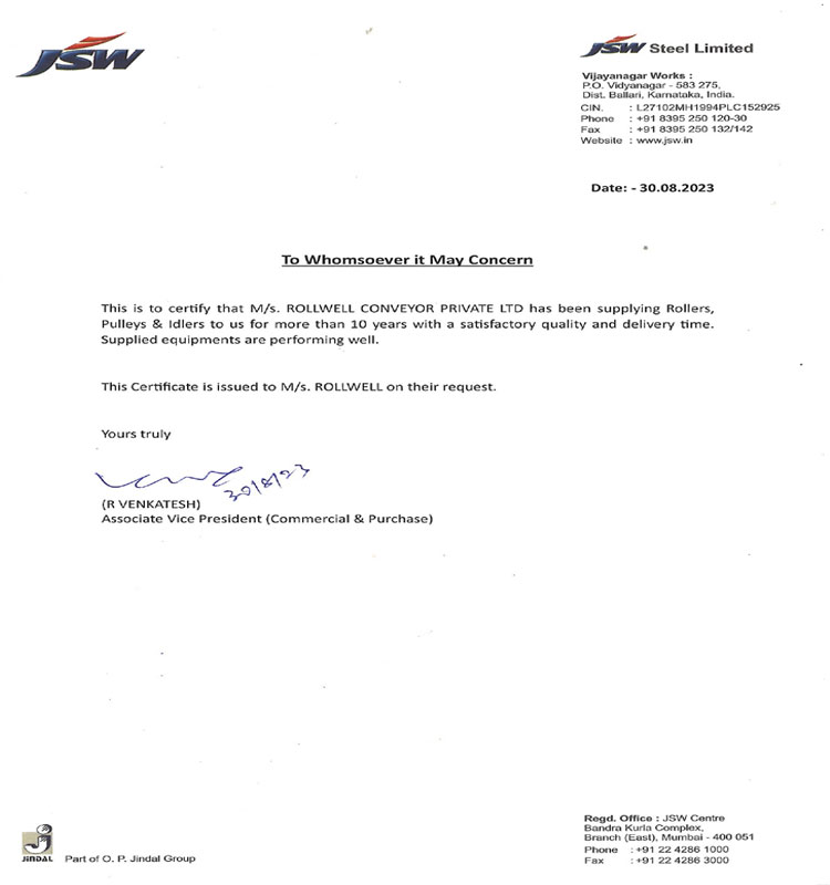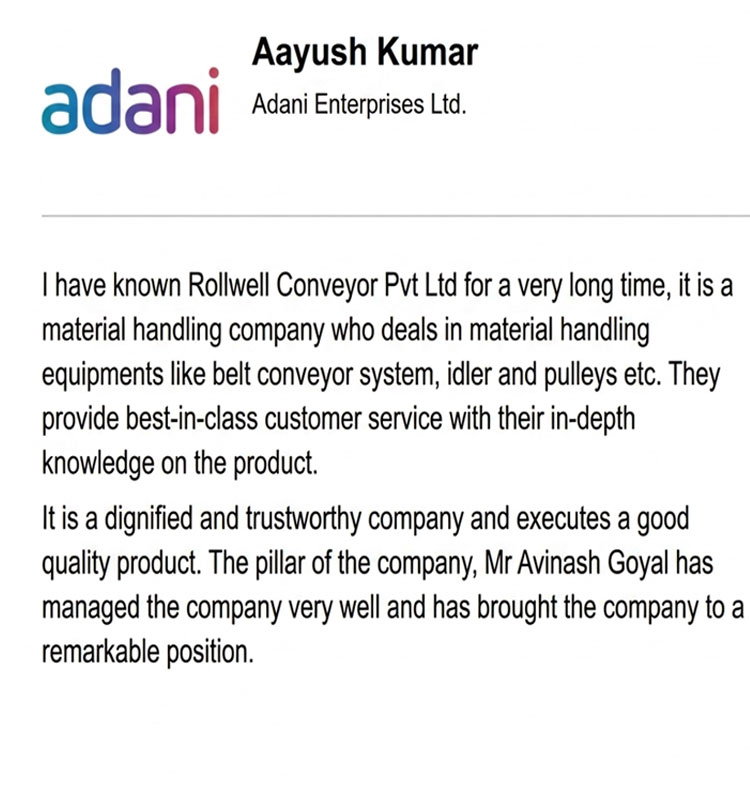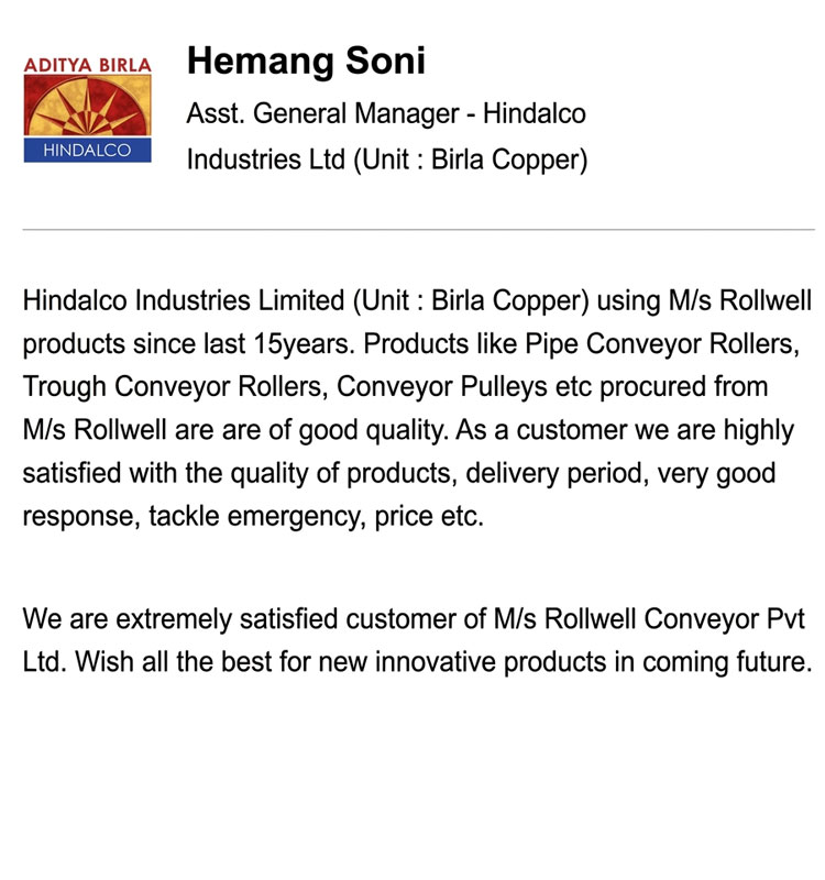Established in 1988, ROLLWELL has emerged as a leading ISO 9001:2008 certified manufacturer, specializing in Rollers, Idlers, Pulleys, Belt Conveyor Systems, and Pipe Conveyors. Recognized for its engineering excellence and superior product reliability, the company has earned a distinguished reputation for delivering high-performance, durable, and cost-effective solutions that conform to stringent international quality standards. With decades of industry expertise, ROLLWELL continues to set benchmarks in the bulk material handling sector through innovation, precision, and customer-centricity.