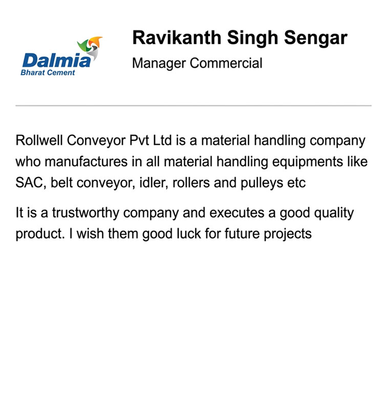 ROLLWELL Conveyor Pvt. Ltd. specializes in comprehensive bulk material handling solutions, covering the complete spectrum of design, engineering, and manufacturing. The company also undertakes projects on an EPC (Engineering, Procurement, and Construction) basis, delivering reliable and efficient end-to-end solutions tailored to diverse industry requirements. With a strong commitment to innovation, quality, and performance, ROLLWELL has established itself as a trusted partner for industries seeking robust and cost-effective material handling systems.